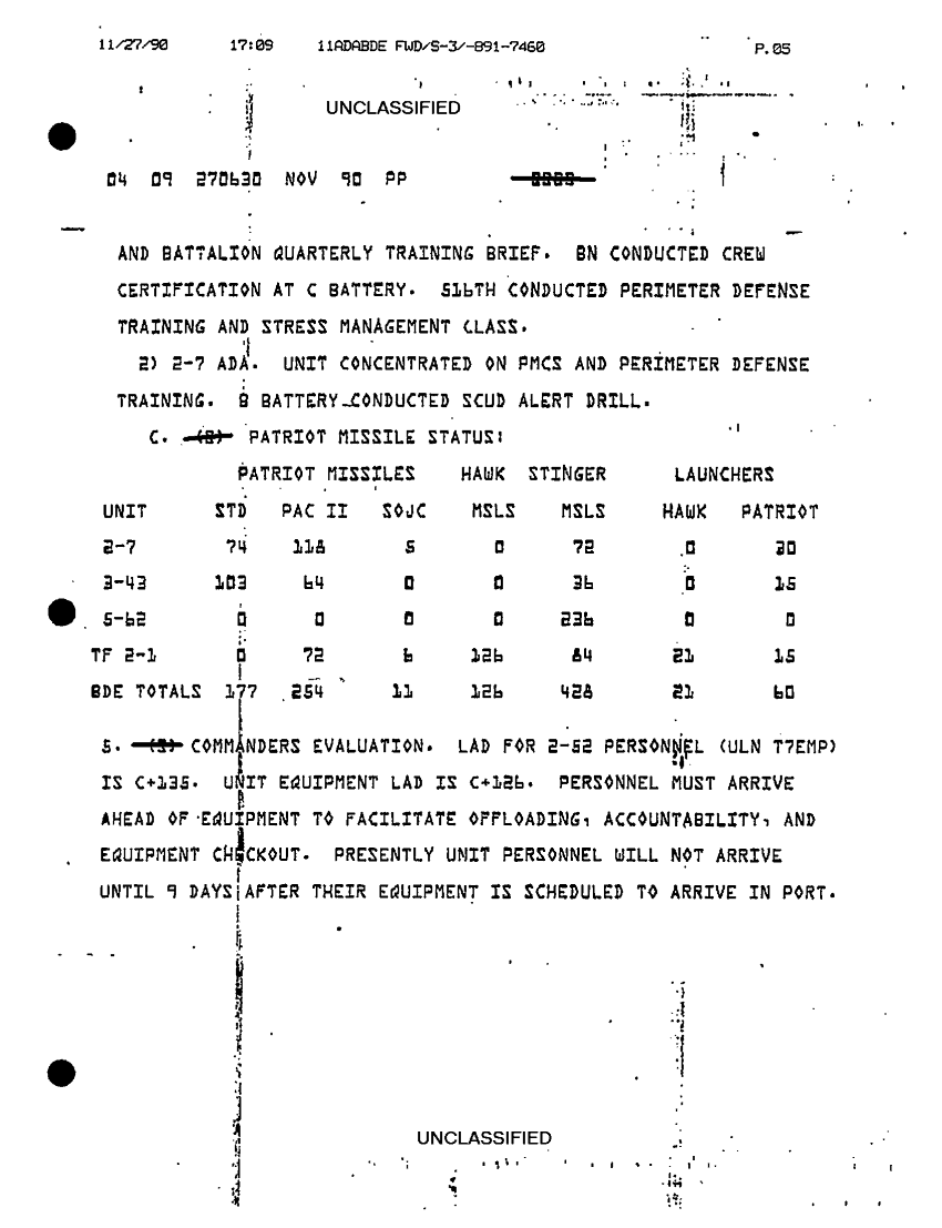 Document 8 f:/Week-32/BX000499/COMMAND REPORTS SITREPS 11TH ADA BDE 7 NOV - 7 DEC 90/11th ada bde situation report no 94 26 to 27 n:10019616505766