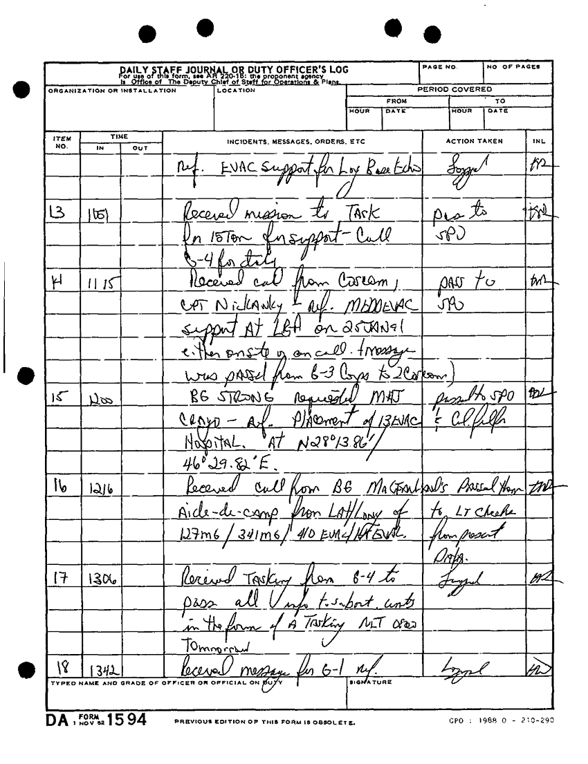 Folder Title = DA FORM 1594-DAILY STAFF JOURNAL OR DUTY OFFICERS LOG -23 DEC 90-26 JAN 91