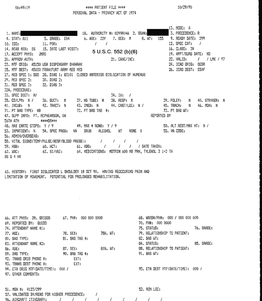 Document 46 f:/Week-32/BX000482/MEDSTAT - SITREPS OCT 90 3 OF 4/patient file 29 oct 90:10019616503417