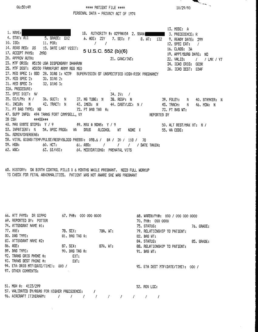 Document 46 f:/Week-32/BX000482/MEDSTAT - SITREPS OCT 90 3 OF 4/patient file 29 oct 90:10019616503417