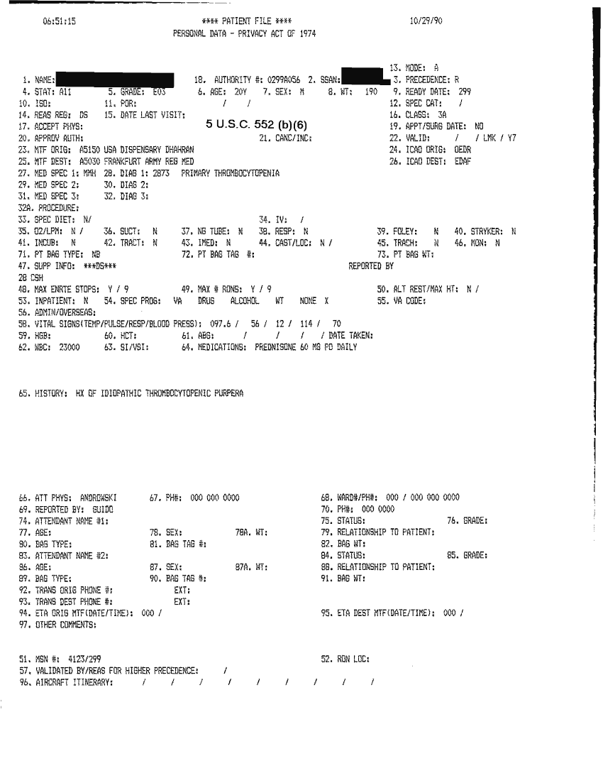Document 46 f:/Week-32/BX000482/MEDSTAT - SITREPS OCT 90 3 OF 4/patient file 29 oct 90:10019616503417
