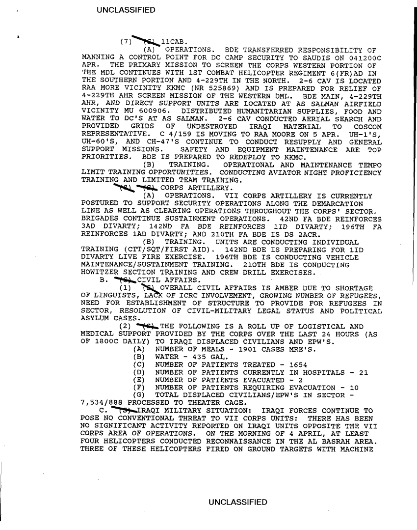 Document 7 f:/Week-33/BX000494/TACTICAL OPERATIONS CENTER LOGS TF FREEDOM 1-9 APR 91-2/sitrep no 77 3 to 4 apr 91:10019616510174