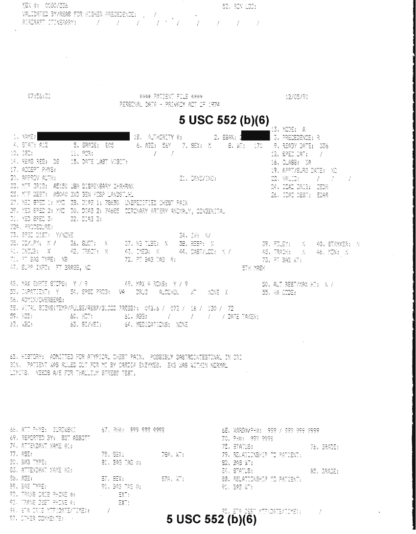 Document 48 f:/Week-32/BX000482/MEDSTAT - SITREPS DEC 90 1 OF 6/patient file personal data:10019616510479