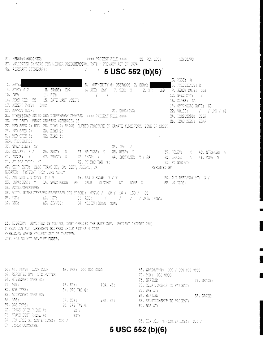 Document 48 f:/Week-32/BX000482/MEDSTAT - SITREPS DEC 90 1 OF 6/patient file personal data:10019616510479
