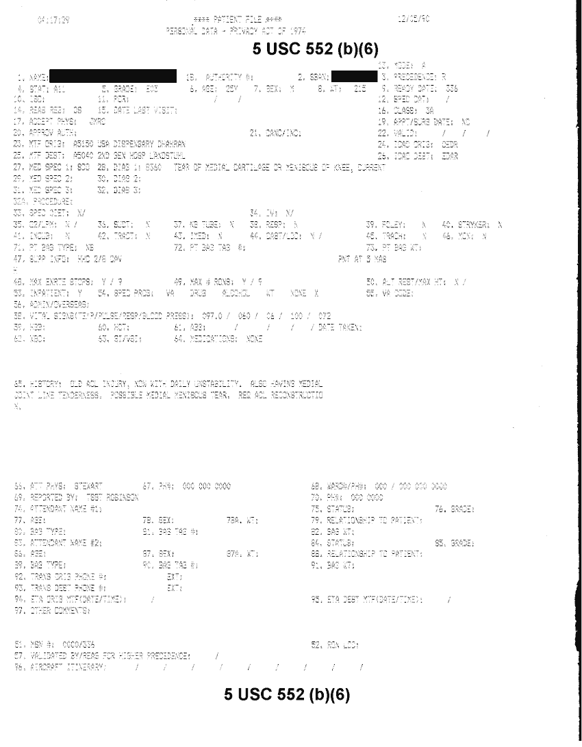 Document 48 f:/Week-32/BX000482/MEDSTAT - SITREPS DEC 90 1 OF 6/patient file personal data:10019616510479