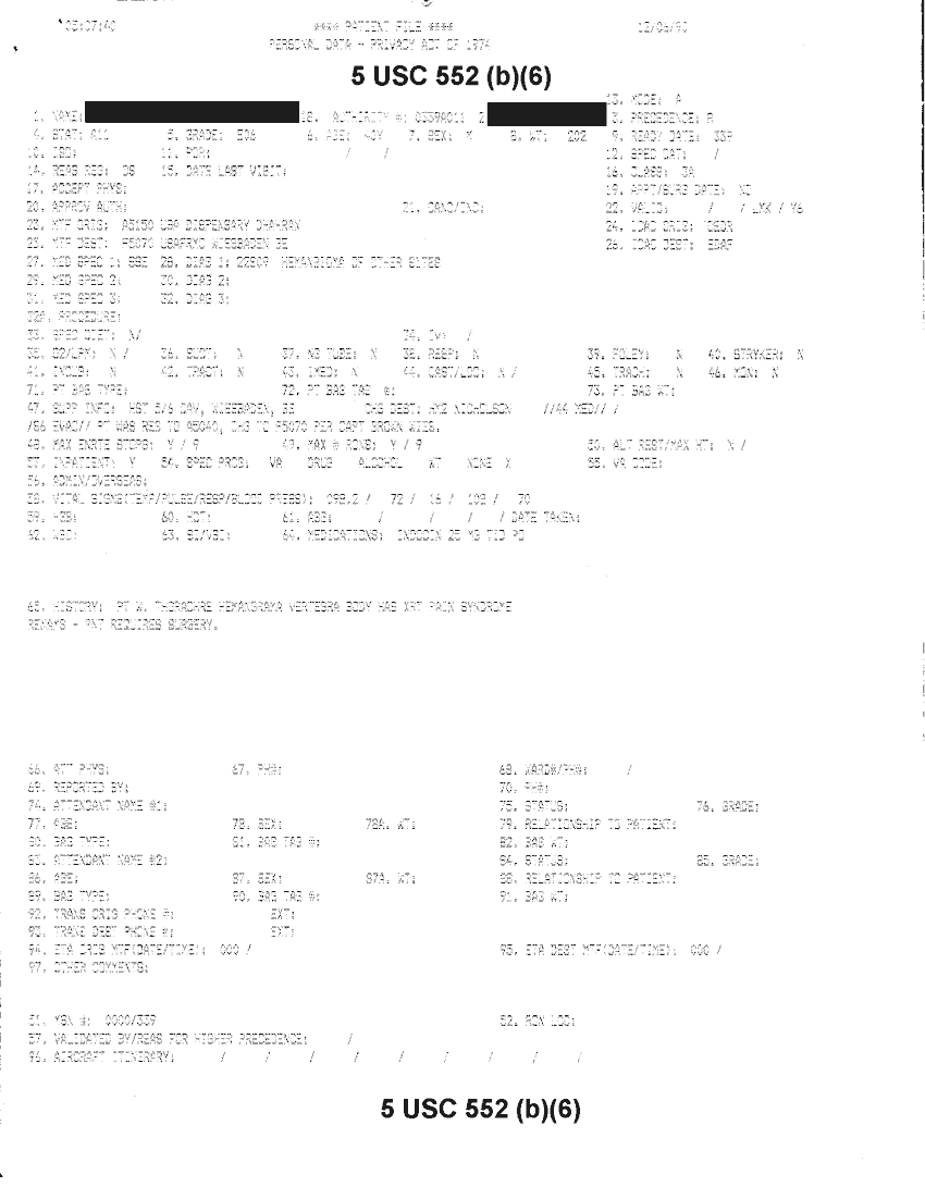 Document 18 f:/Week-32/BX000482/MEDSTAT - SITREPS DEC 90 1 OF 6/patient file personal data:10019616510480
