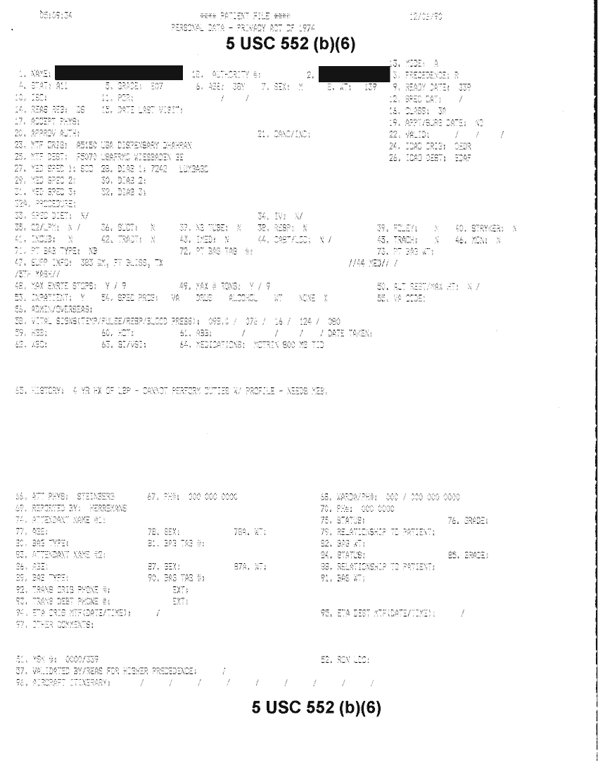 Document 18 f:/Week-32/BX000482/MEDSTAT - SITREPS DEC 90 1 OF 6/patient file personal data:10019616510480