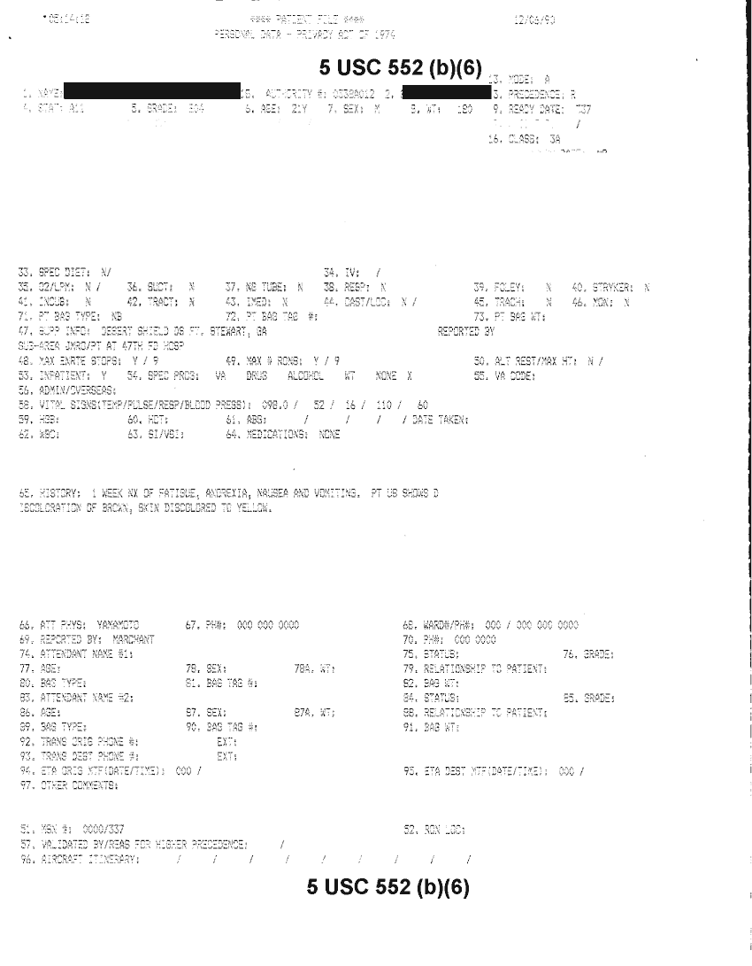 Document 18 f:/Week-32/BX000482/MEDSTAT - SITREPS DEC 90 1 OF 6/patient file personal data:10019616510480