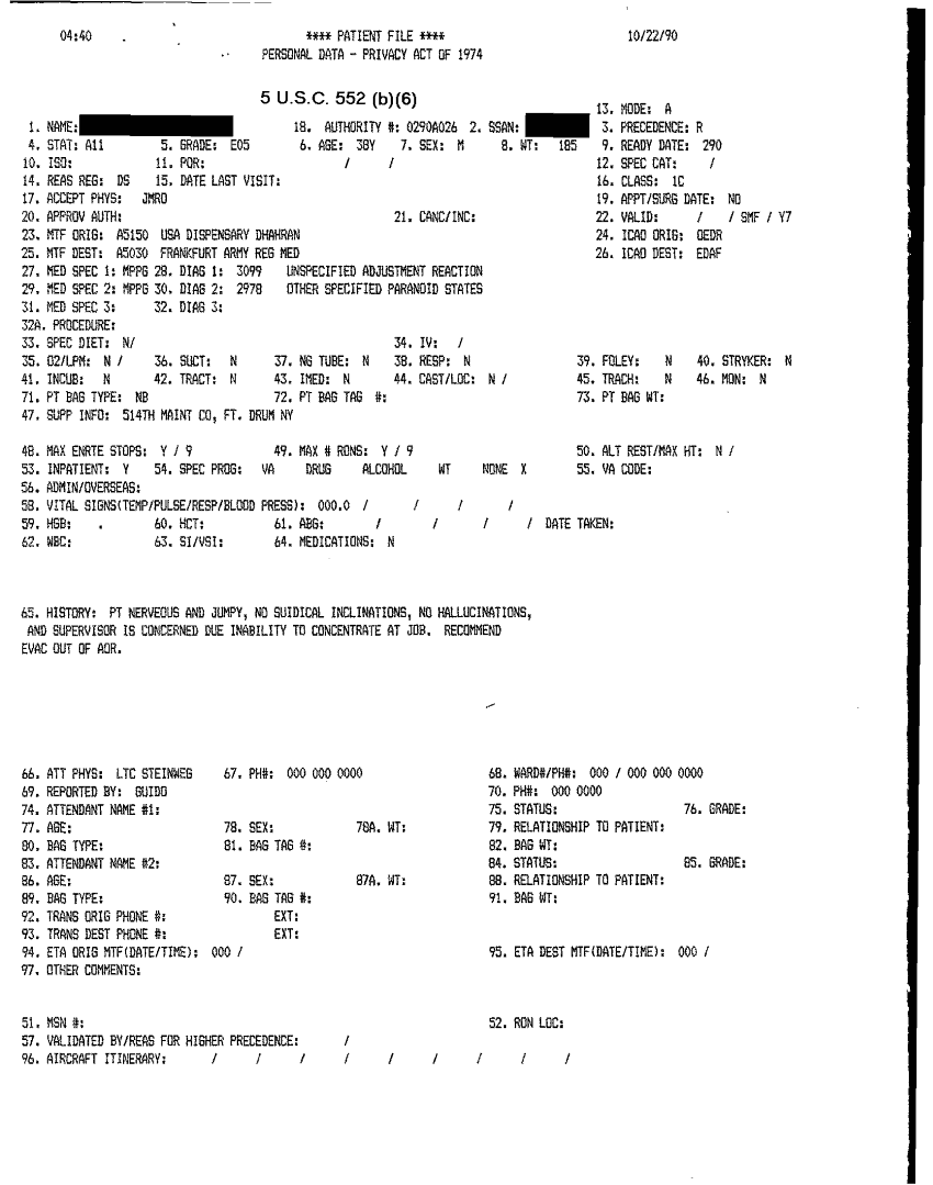 Document 41 f:/Week-32/BX000482/MEDSTAT - SITREPS OCT 90 3 OF 4/patient file:10019616503518