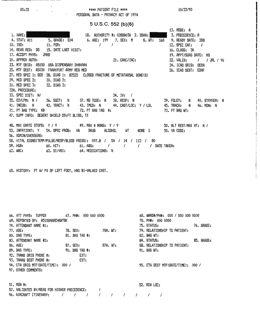 Document 41 f:/Week-32/BX000482/MEDSTAT - SITREPS OCT 90 3 OF 4/patient file:10019616503518