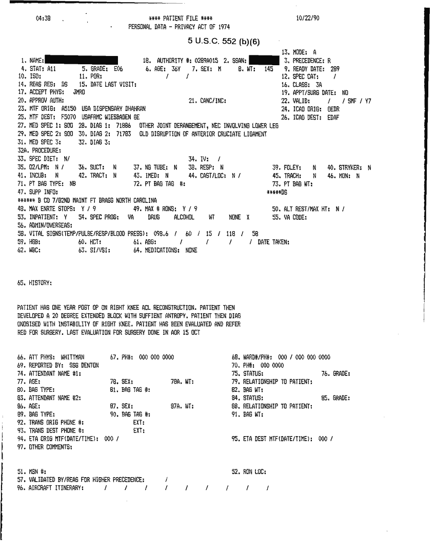 Document 41 f:/Week-32/BX000482/MEDSTAT - SITREPS OCT 90 3 OF 4/patient file:10019616503518