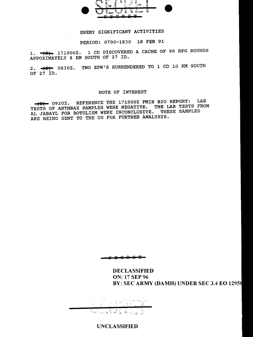 Document 1 f:/Week-32/BX000471/INTELLIGENCE REPORTS FEB 1991-4/enemy significant activities 18 feb 91:10019616511398