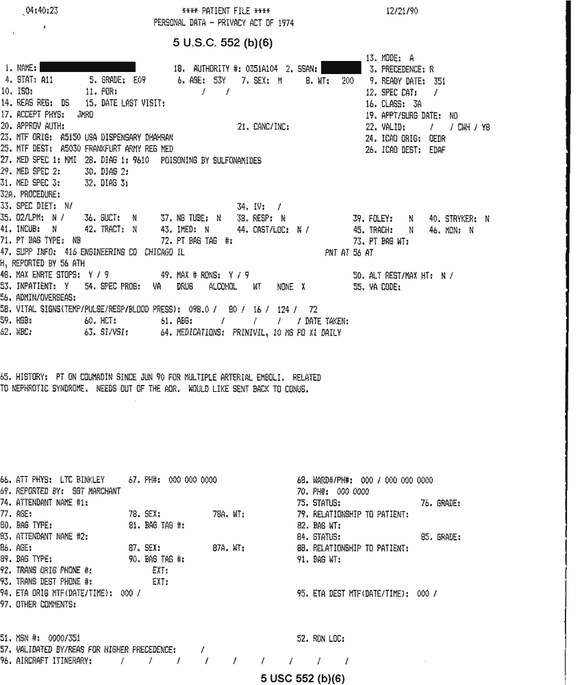 Document 26 f:/Week-32/BX000482/MEDSTAT - SITREPS DEC 90 2 OF 6/patient files 21 dec 90:10019616503519