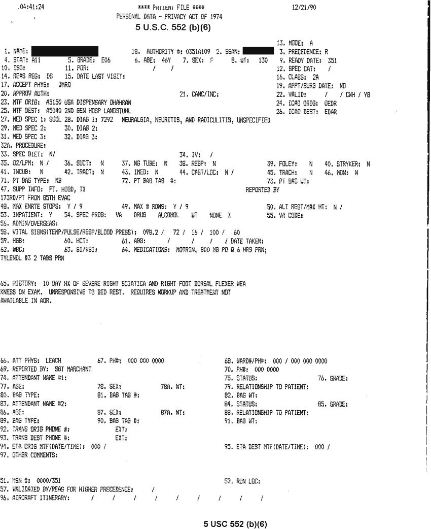 Document 26 f:/Week-32/BX000482/MEDSTAT - SITREPS DEC 90 2 OF 6/patient files 21 dec 90:10019616503519