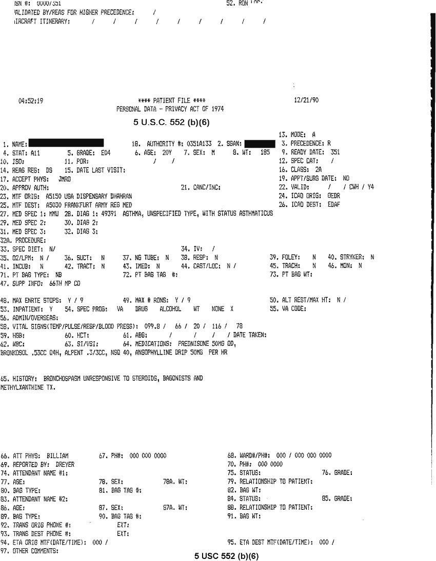Document 26 f:/Week-32/BX000482/MEDSTAT - SITREPS DEC 90 2 OF 6/patient files 21 dec 90:10019616503519