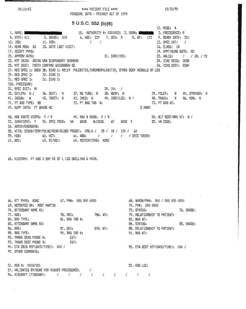 Document 31 f:/Week-32/BX000482/MEDSTAT - SITREPS OCT 90 3 OF 4/patient file:10019616503620