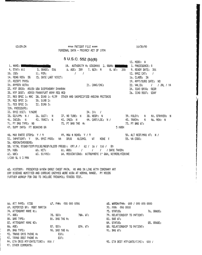 Document 31 f:/Week-32/BX000482/MEDSTAT - SITREPS OCT 90 3 OF 4/patient file:10019616503620