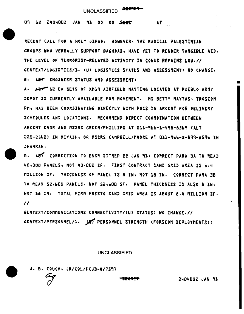 Document 11 f:/Week-33/BX005006/SITREPS-20-25 JAN 91/sitrep 170 cincfor fcj3 cat 24 jan 91:10019616503723