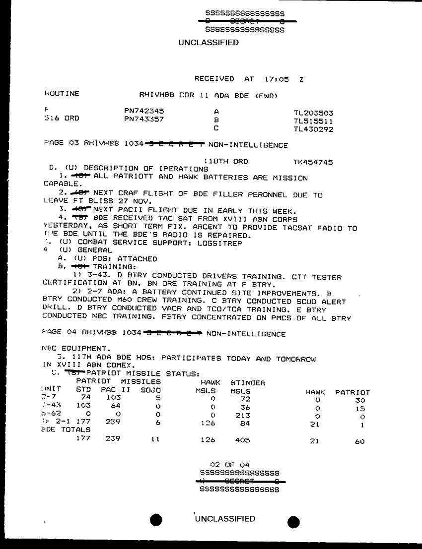 Document 8 f:/Week-29/BX000429/TACTICAL OPERATIONS CENTER LOGS - MSG FILE LOGS 19 NOV 90/sitrep 86 11th ada bde fwd 19 nov 90:10019616505561