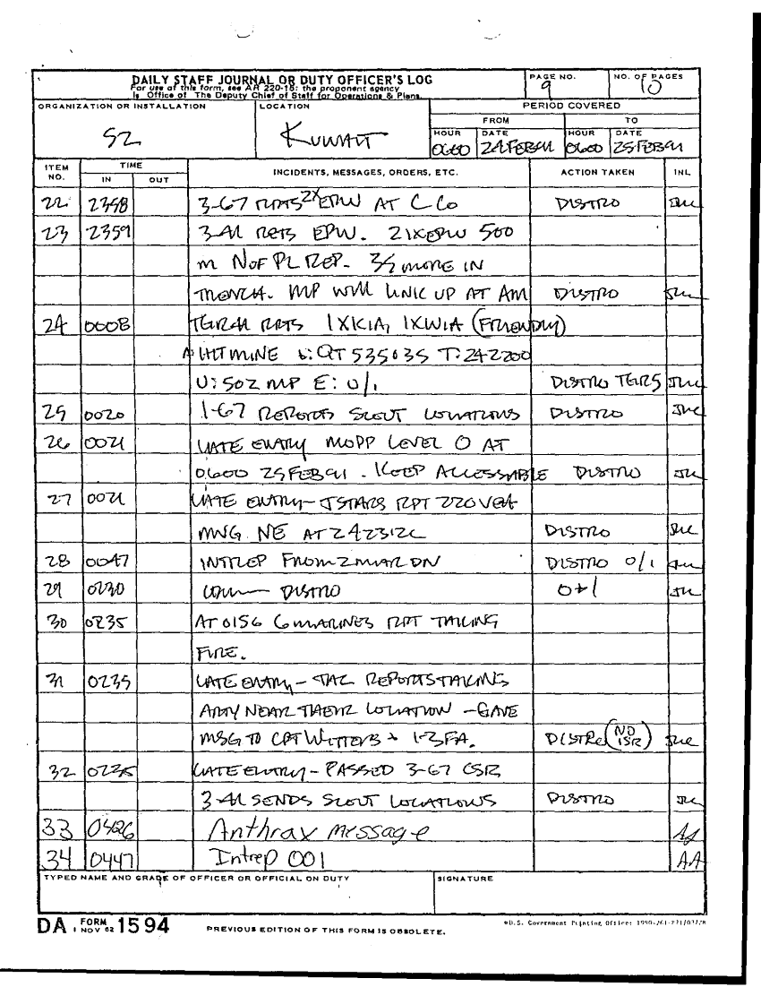 Document 13 f:/Week-28/BX001921/DAILY STAFF JOURNALS 25-28 FEB 91/daily staff journals 24feb91:100196165117106