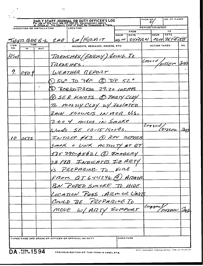 Document 22 f:/Week-28/BX001921/DAILY STAFF JOURNALS 25-28 FEB 91/daily staff journal 24feb91:100196165117107