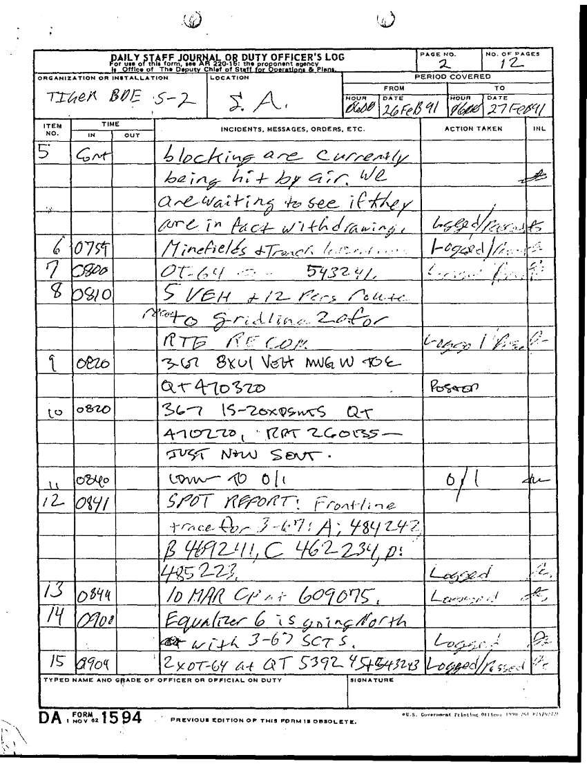 Folder Title = DAILY STAFF JOURNALS 25-28 FEB 91