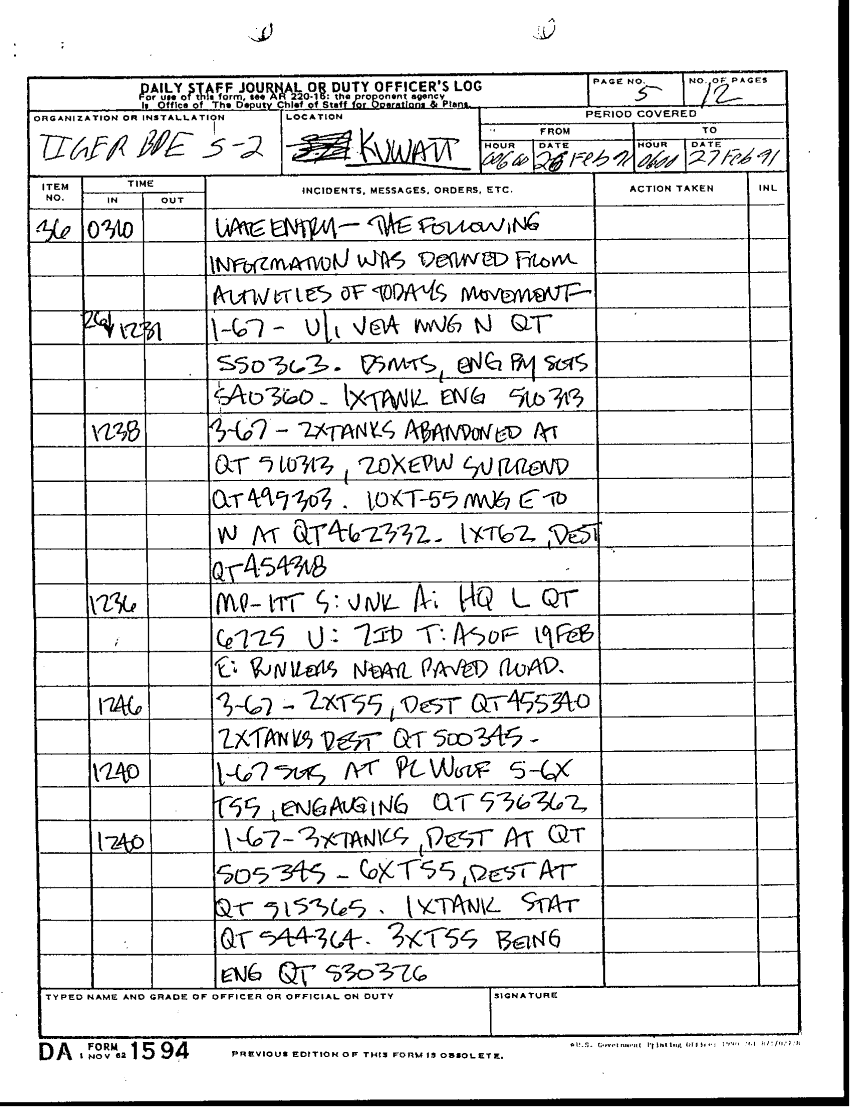 Document 22 f:/Week-28/BX001921/DAILY STAFF JOURNALS 25-28 FEB 91/daily staff journal 24feb91:100196165117107