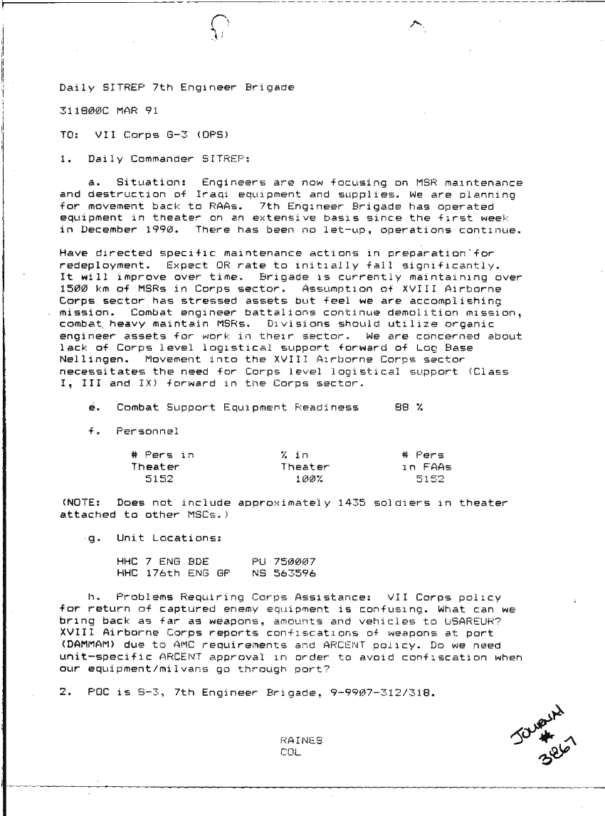 Folder Title = SITUATION REPORTS 7TH ENG BDE 22 DEC 90- 10 APR 91