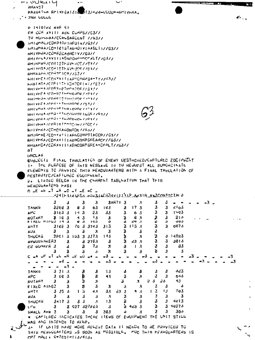 Subject = FINAL TABULATION OF ENEMY DESTROYED CAPTURED EQU