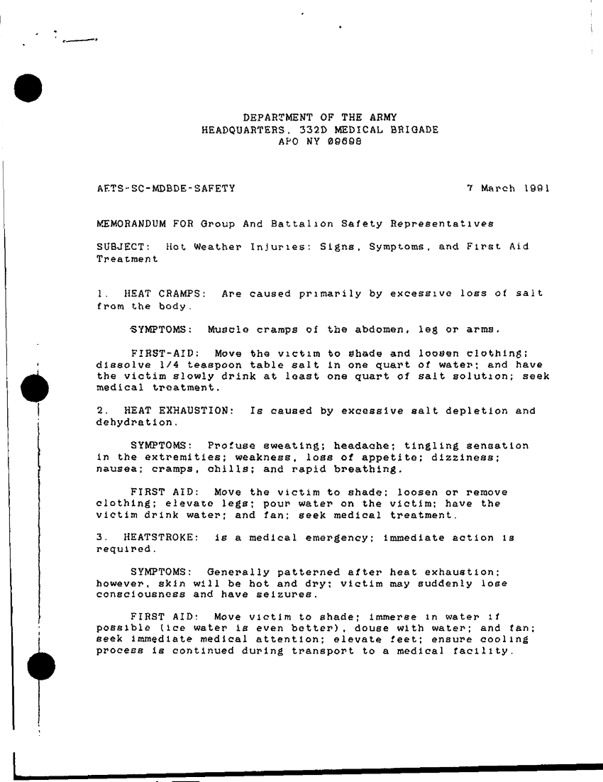 Document 3 f:/Week-35/BX005158/GENERAL SAFETY AWARNESS FILES/prevention of hot weather injuries 7 mar 91:10019616510377