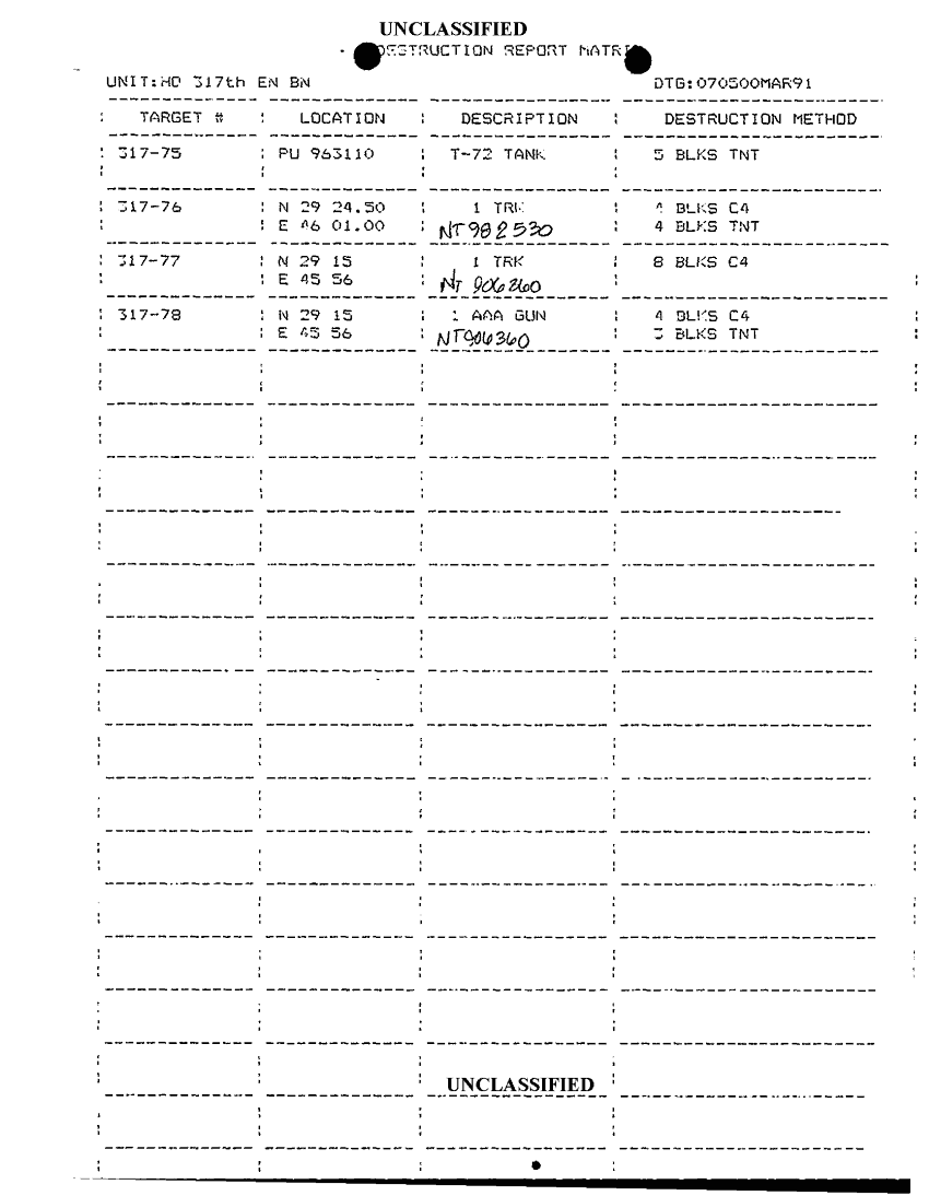 Subject = ANNEX B DESTRUCTION RPT MATRIX FRAGO 1 91 79 TO