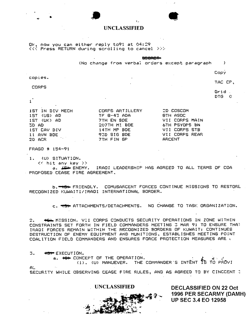Subject = FRAGO 154 91