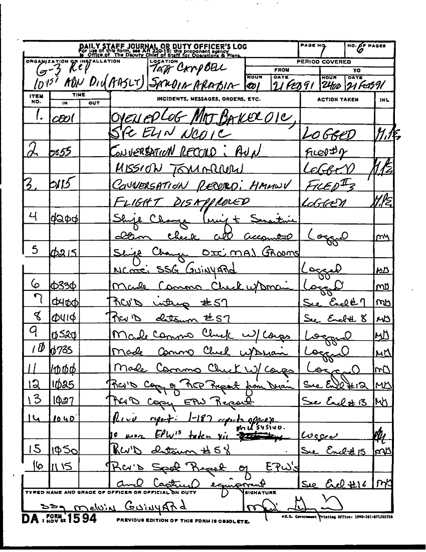 Document 48 f:/Week-22/BX001604/DUTY LOG G3 MAIN 15-27 SEP 90 G3 REAR 21-28 FEB 91/daily staff journal:10259613091549