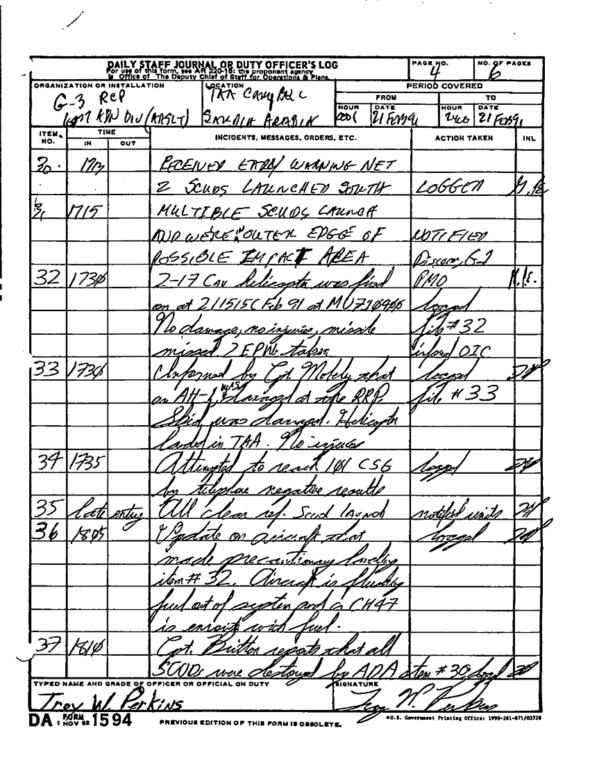 Document 48 f:/Week-22/BX001604/DUTY LOG G3 MAIN 15-27 SEP 90 G3 REAR 21-28 FEB 91/daily staff journal:10259613091549
