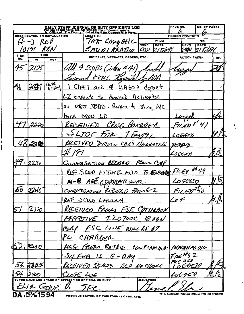 Document 48 f:/Week-22/BX001604/DUTY LOG G3 MAIN 15-27 SEP 90 G3 REAR 21-28 FEB 91/daily staff journal:10259613091549