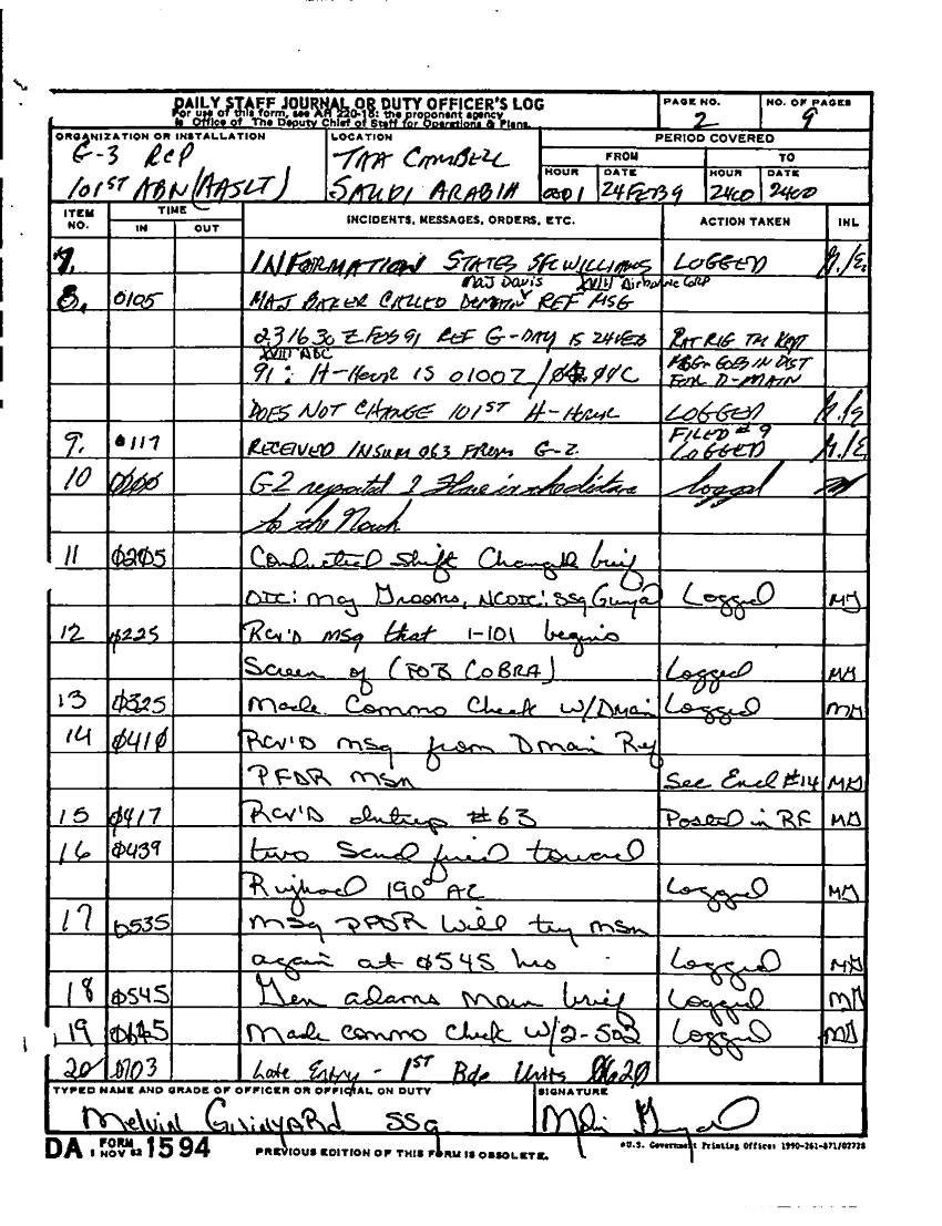 Document 48 f:/Week-22/BX001604/DUTY LOG G3 MAIN 15-27 SEP 90 G3 REAR 21-28 FEB 91/daily staff journal:10259613091549