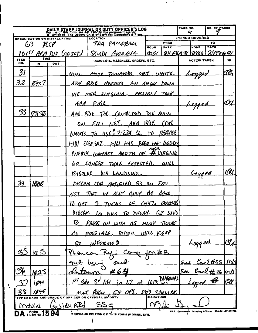 Document 48 f:/Week-22/BX001604/DUTY LOG G3 MAIN 15-27 SEP 90 G3 REAR 21-28 FEB 91/daily staff journal:10259613091549