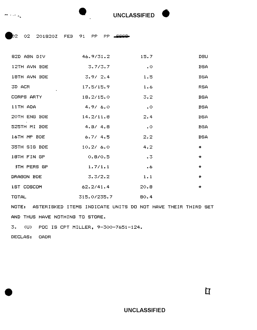 Document 2 f:/Week-14/BX000012/DUTY LOG OUTGOING MESSAGE G3 18-22 FEB 91/artillery deconfliction line:11049609134583