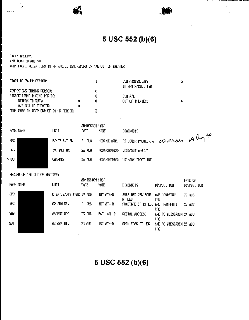 Document 4 f:/Week-32/BX000482/MEDSTAT - SITREPS AUG 90 1 OF 1/army hospitalization outpatient visits 28 sep :110496091416119