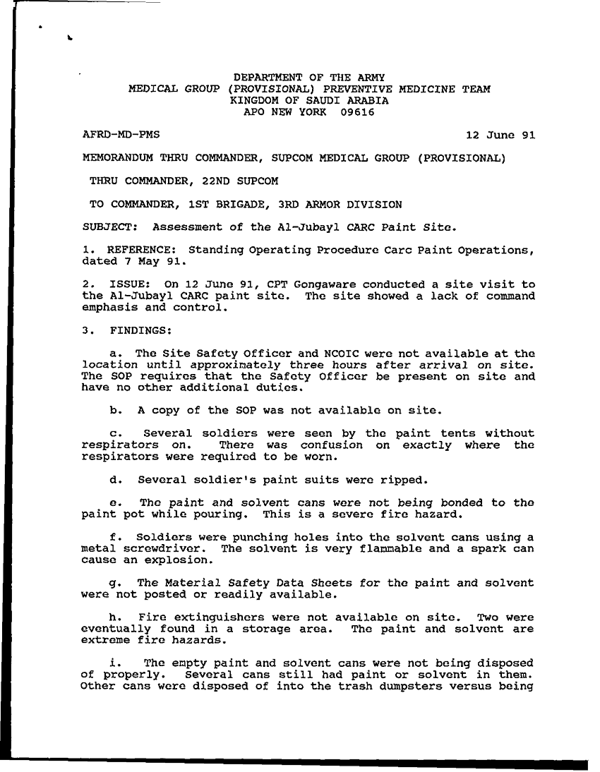 Subject = ASSESSMENT OF THE AL JUBAYL CARC PAINT SITE 12