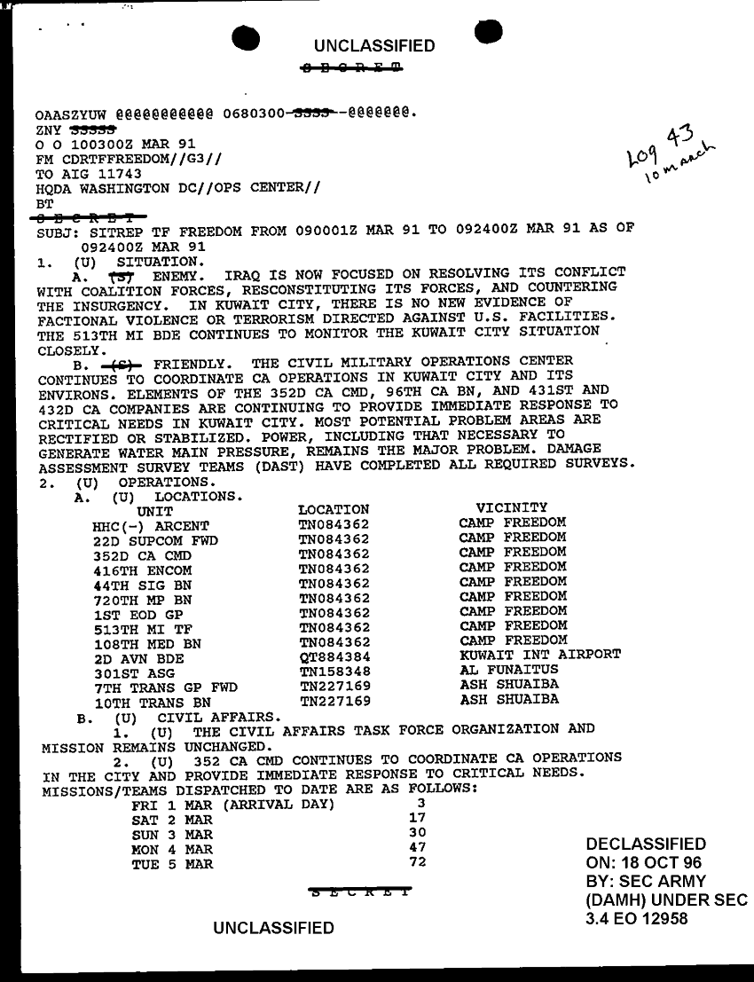 Document 4 f:/Week-33/BX000494/COMMMAND REPORTS RPTS TASK FORCE FREEDOM 1 OF 2 -1/sitrep trf freedom 9 mar 91:11049609132261