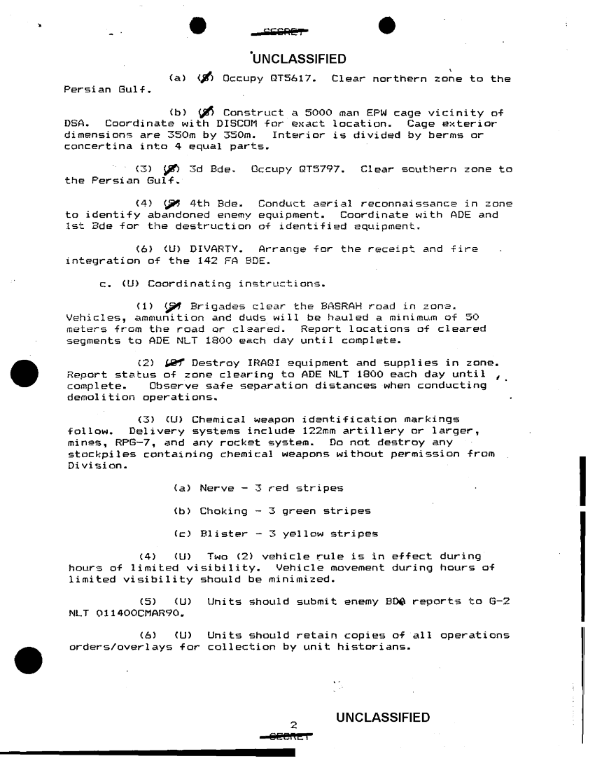 Subject = FRAGO CLEARANCE OF ZONE 28 FEB 91