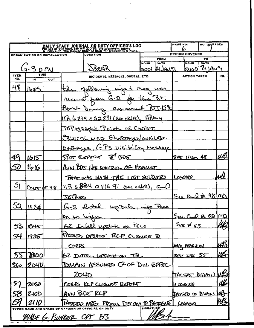 Document 7 f:/Week-22/BX001601/DUTY LOG G3 REAR 21 JAN 91/daily staff journal 21 jan 91:11049609133877
