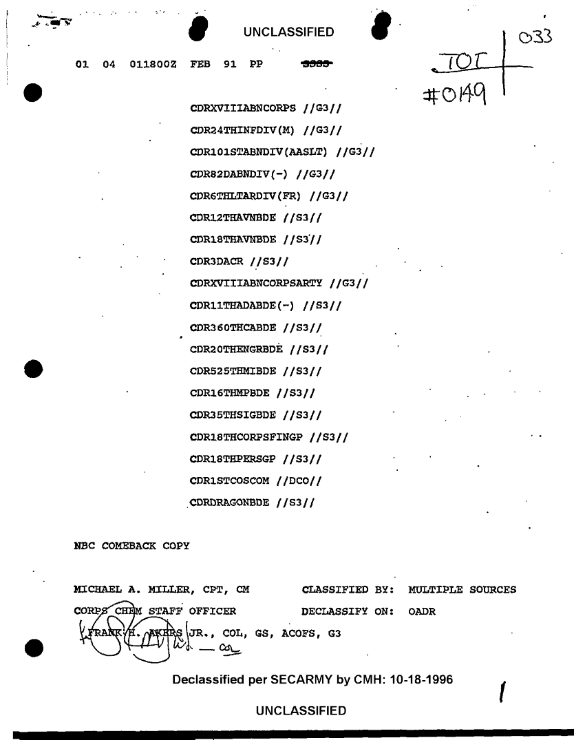 Document 4 f:/Week-10/BX000017/DUTY LOG G3 2-6 FEB 91/daily staff journal or duty officers log:11049609133776