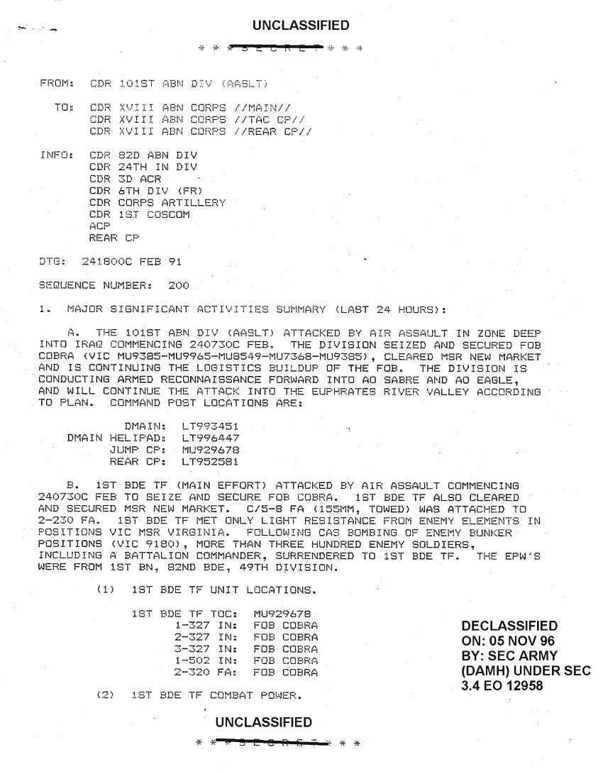 Document 5 f:/Week-18/BX000055/101ST ABN DIV SITREPS FEB 91/significant activities summary 24 feb 91 seq 2:11229616375761