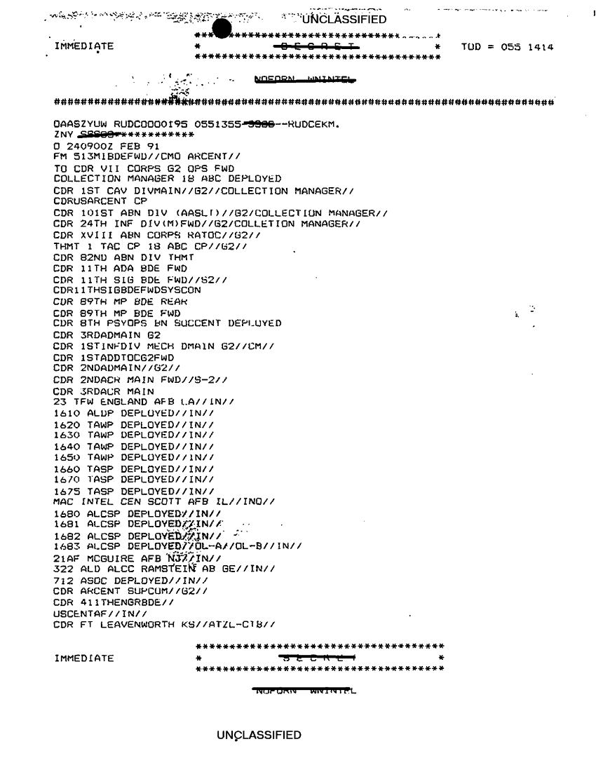 Folder Title = TACTICAL OPERATIONS CENTER LOGS-INCOMING MESSAGE FILES- 24 TO 26 FEB 91