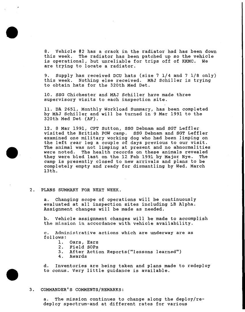 Document 38 f:/Week-32/BX000481/COMMAND REPORTS 422SD MED DET VETERINARY SVCS COMMAND REPORT/weekly commander updates app b:11229616374042