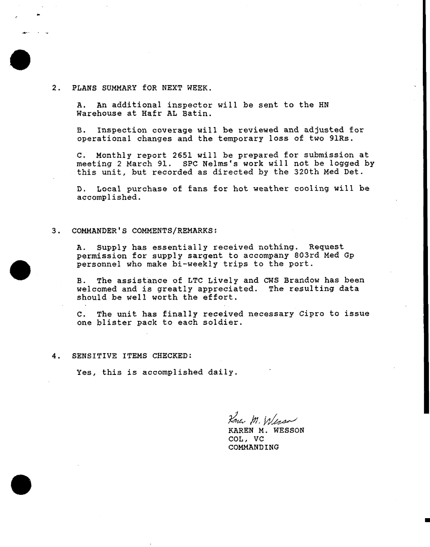 Document 38 f:/Week-32/BX000481/COMMAND REPORTS 422SD MED DET VETERINARY SVCS COMMAND REPORT/weekly commander updates app b:11229616374042