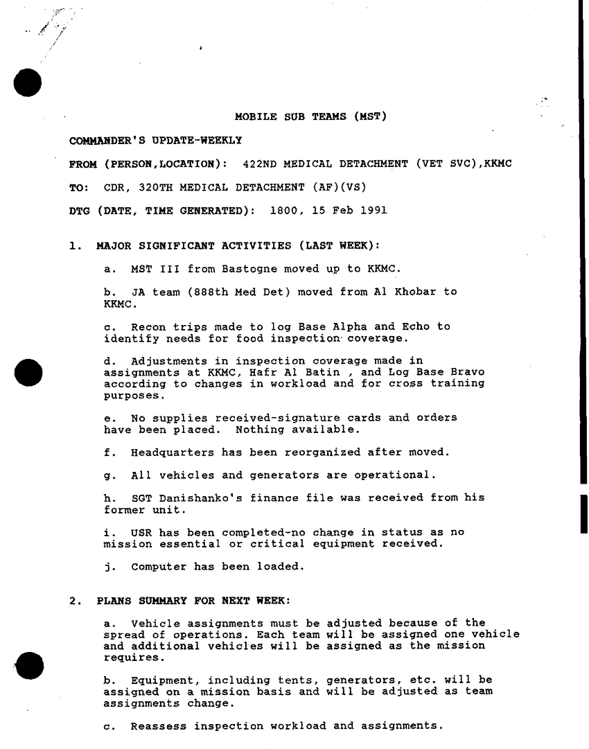 Document 38 f:/Week-32/BX000481/COMMAND REPORTS 422SD MED DET VETERINARY SVCS COMMAND REPORT/weekly commander updates app b:11229616374042