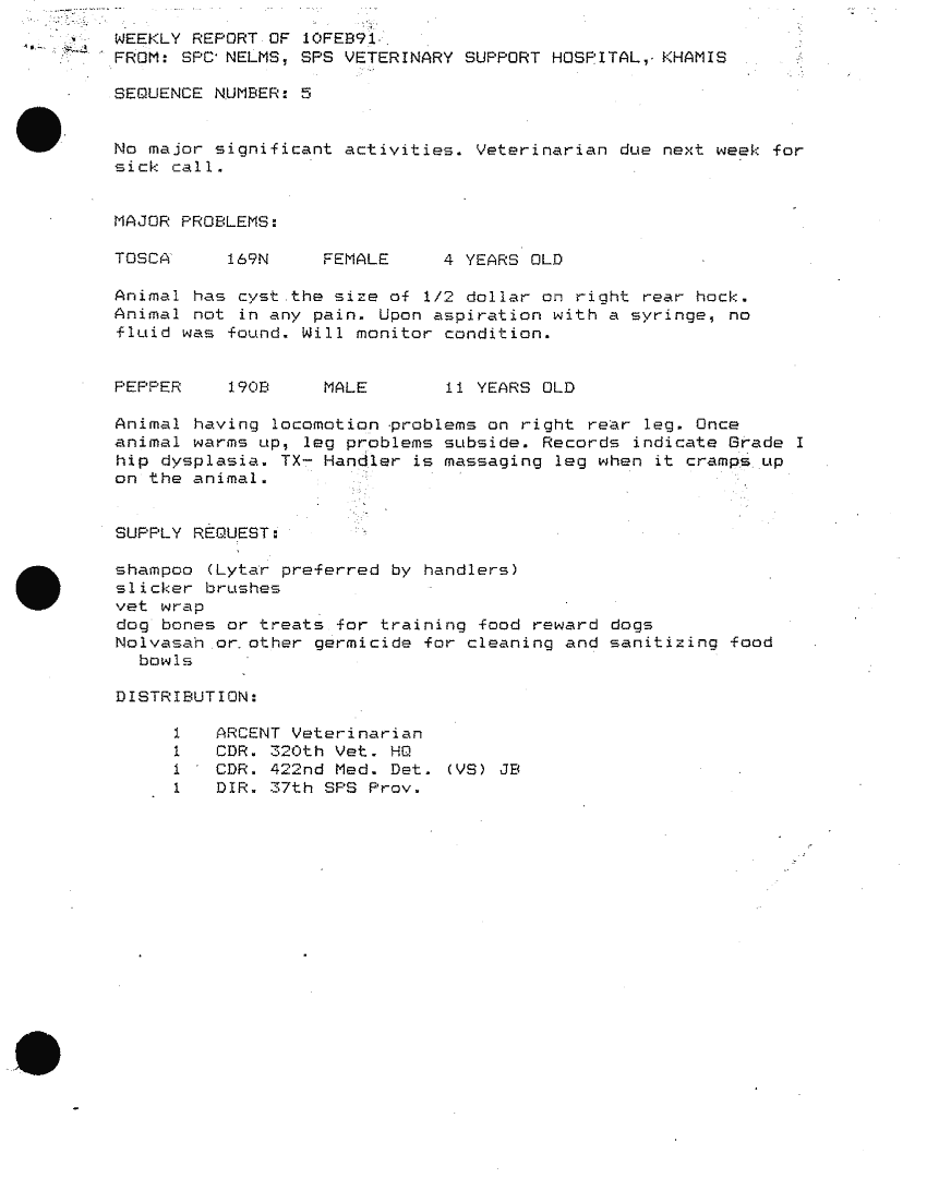 Document 38 f:/Week-32/BX000481/COMMAND REPORTS 422SD MED DET VETERINARY SVCS COMMAND REPORT/weekly commander updates app b:11229616374042